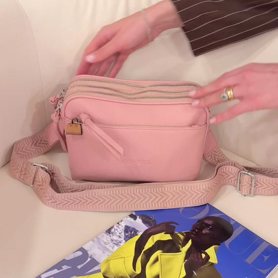 È indossabile a tracolla (regolabile per tutte le misure)